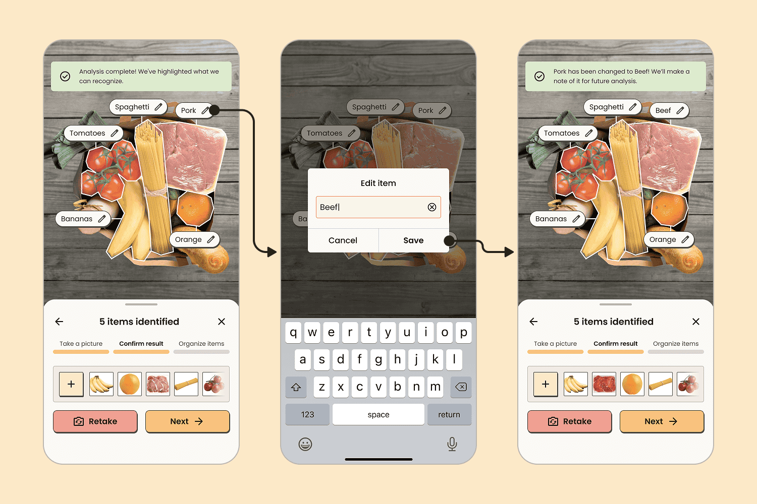 Through testing and iterations, the flow is revised to inform the user better and allow them to correct AI mistakes.