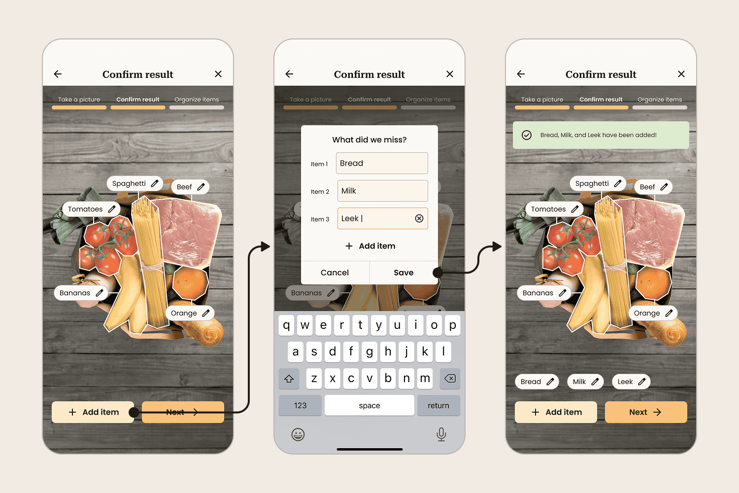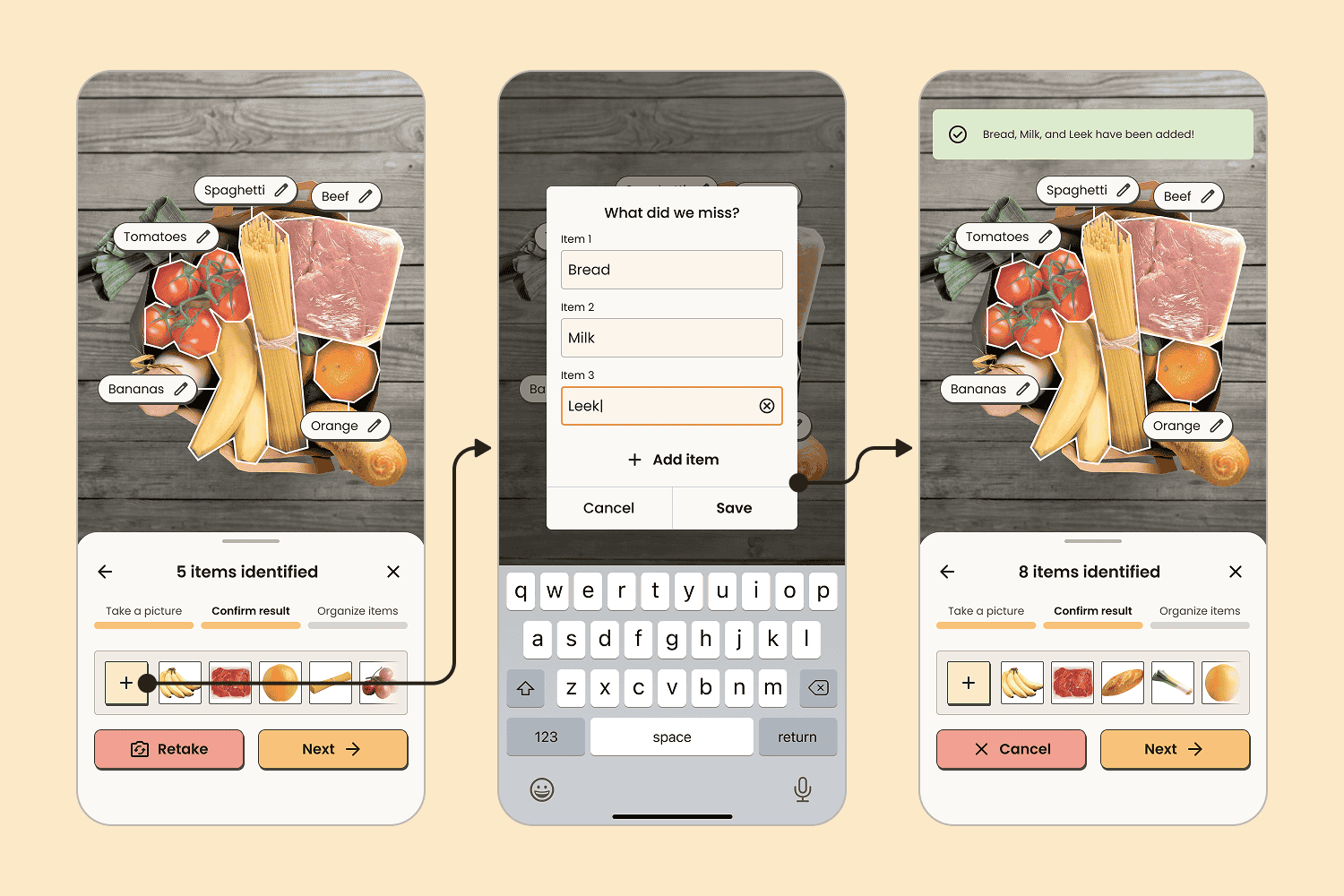 Using a picture to add groceries to a digital management system