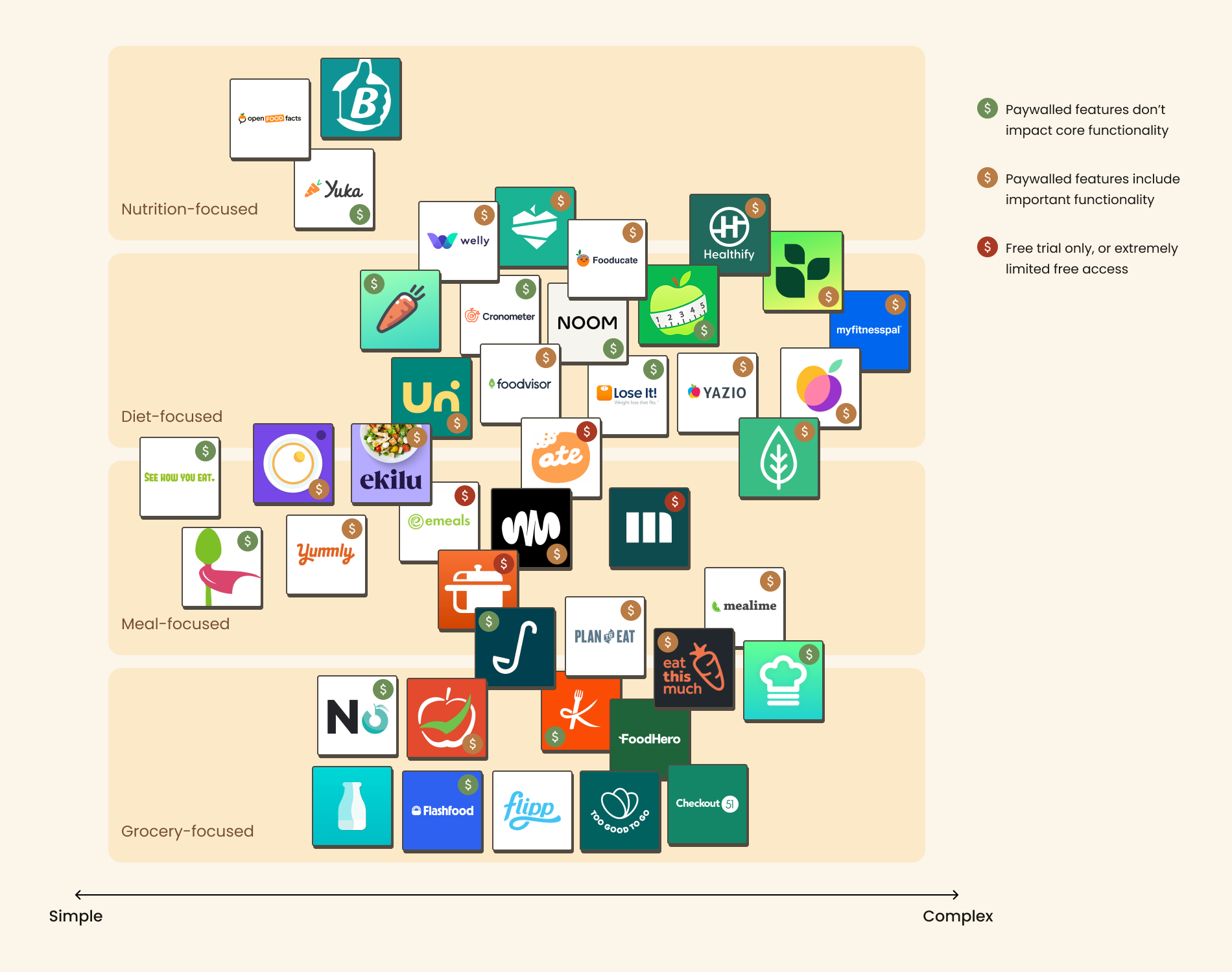 Simple apps like Out of Milk are more economical and less mentally taxing, but lesser known. Complex apps like MyFitnessPal or Healthify, while well-known, often paywall useful features and revolve around calorie trackers and streak systems that don't fit into students' busy lifestyles and stressful schedules.