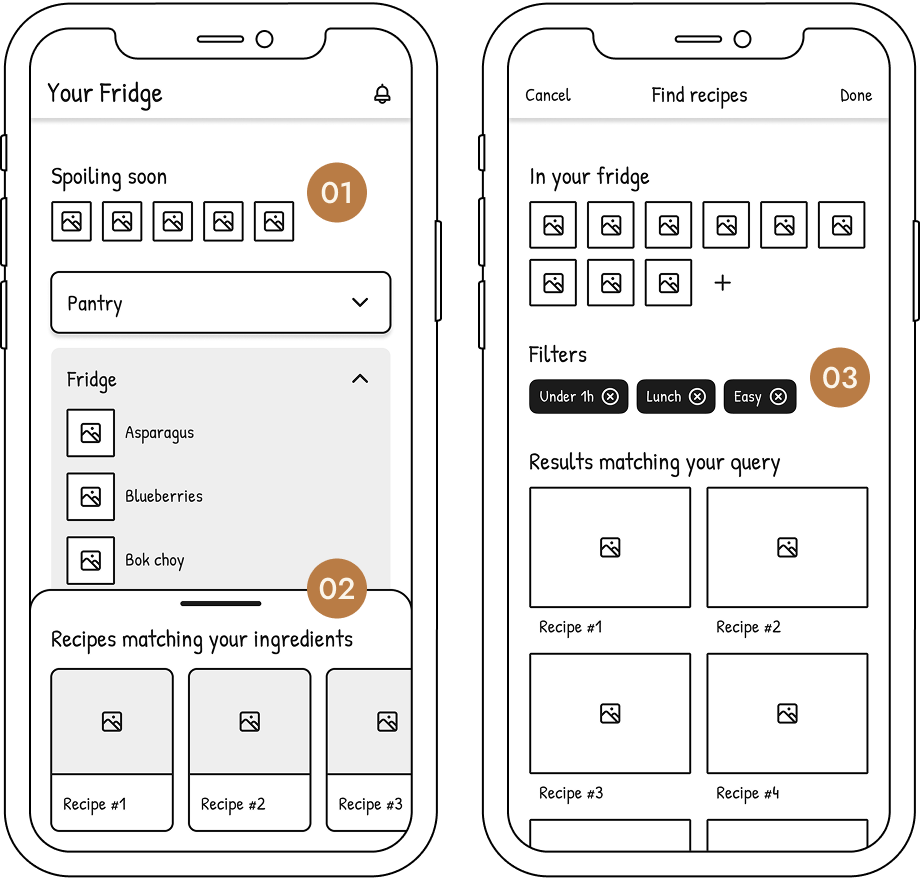 A mobile tool helping students keep track of groceries and find varied recipes that suit their circumstances.