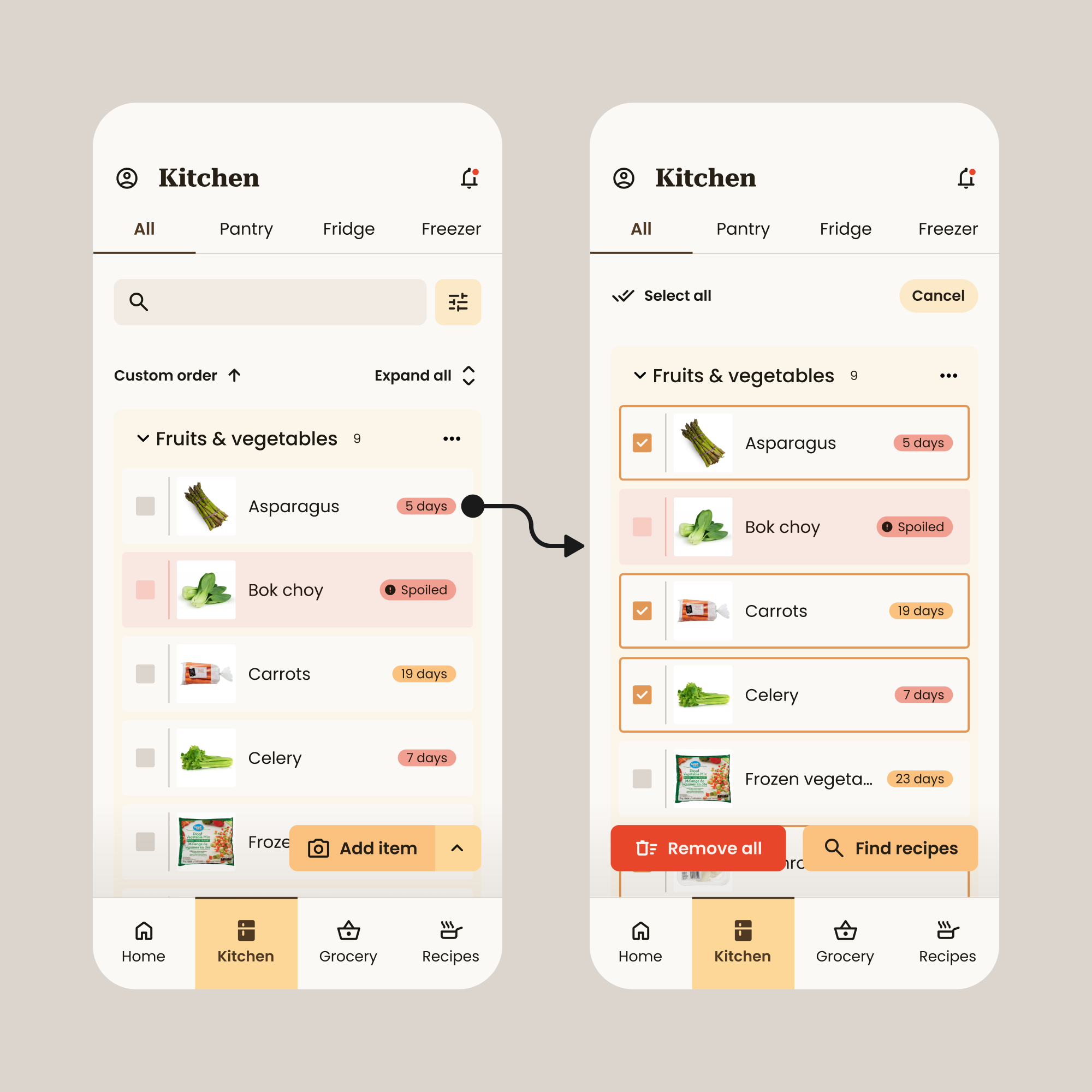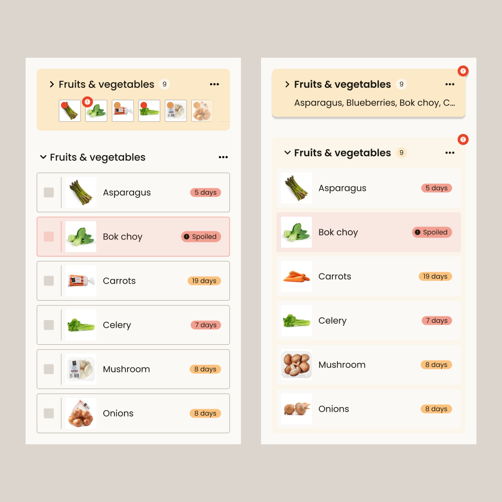 Groceries management is made simpler through these design decisions...