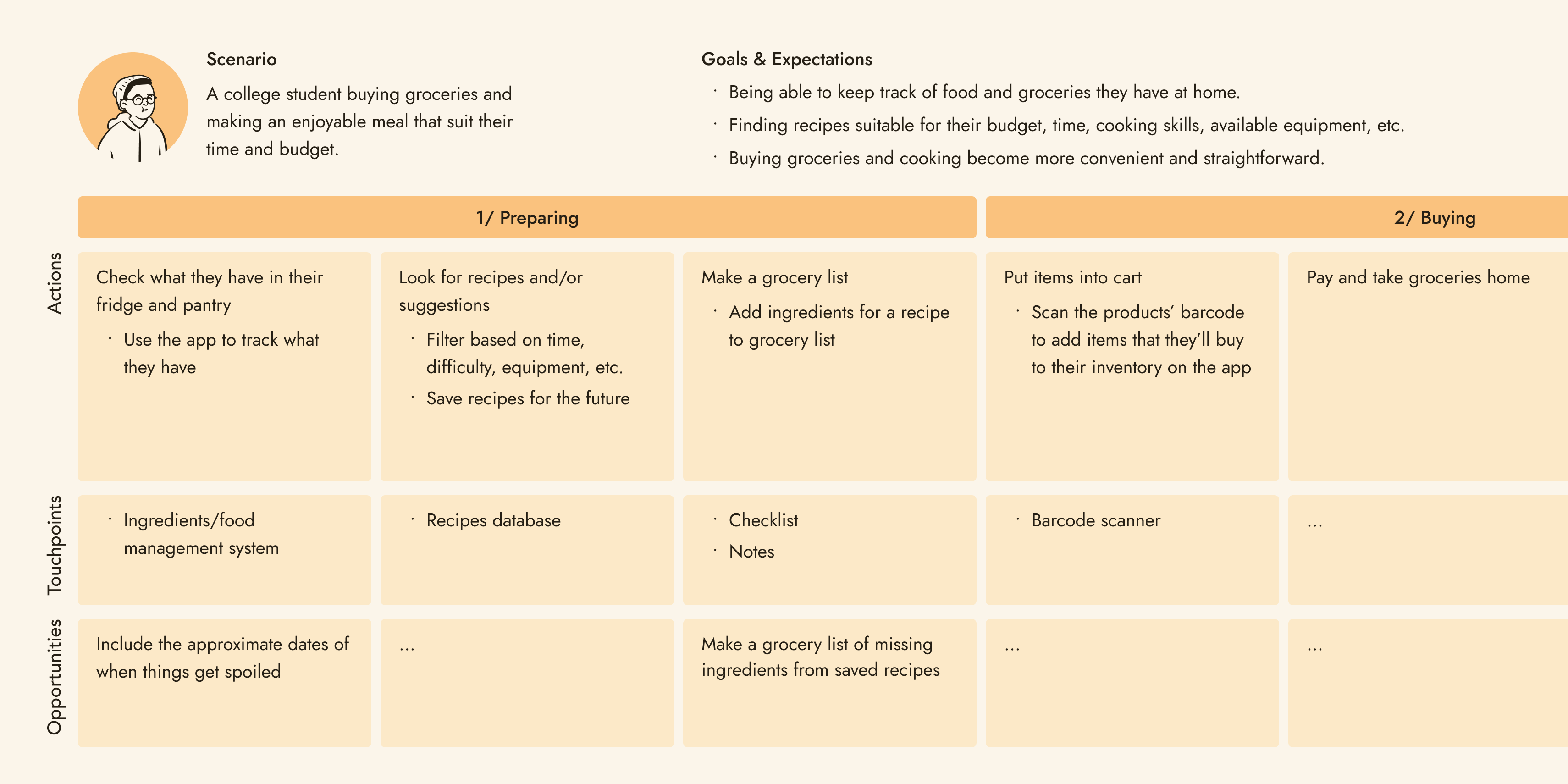 The design and testing process focused on 3 use cases to cover the journey from buying groceries to cooking.