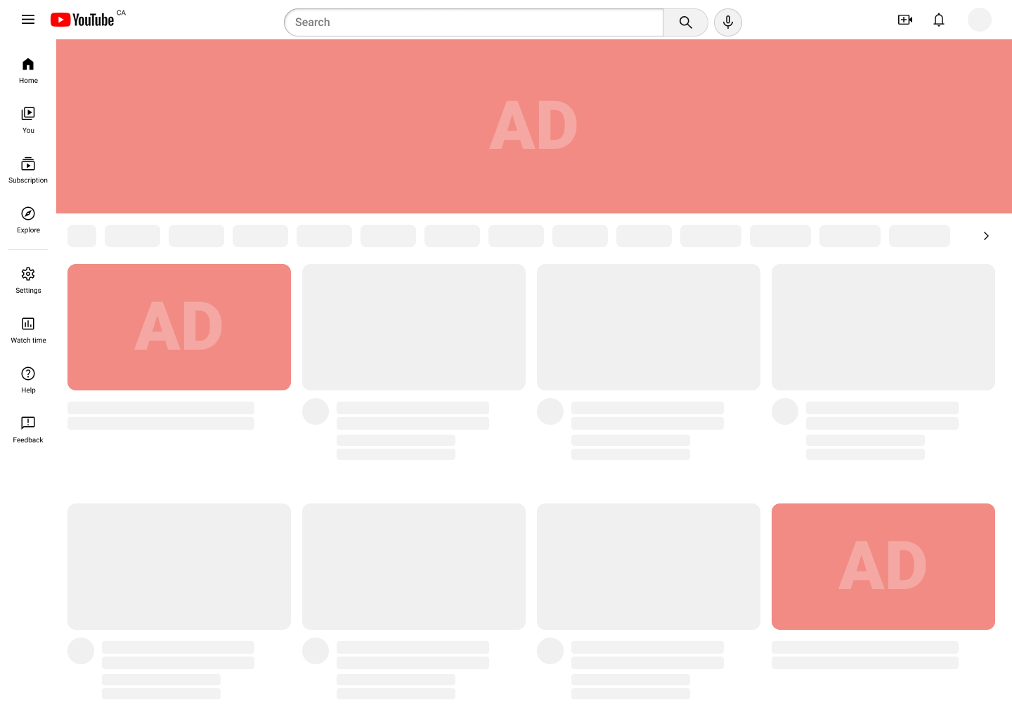 I moved the search bar closer to the center of the screen to draw attention to it when viewers first navigate to the Home feed. The additional emphasis on the search bar and filter tags encourages viewers to search for what they want, rather than passively exploring their recommendations.