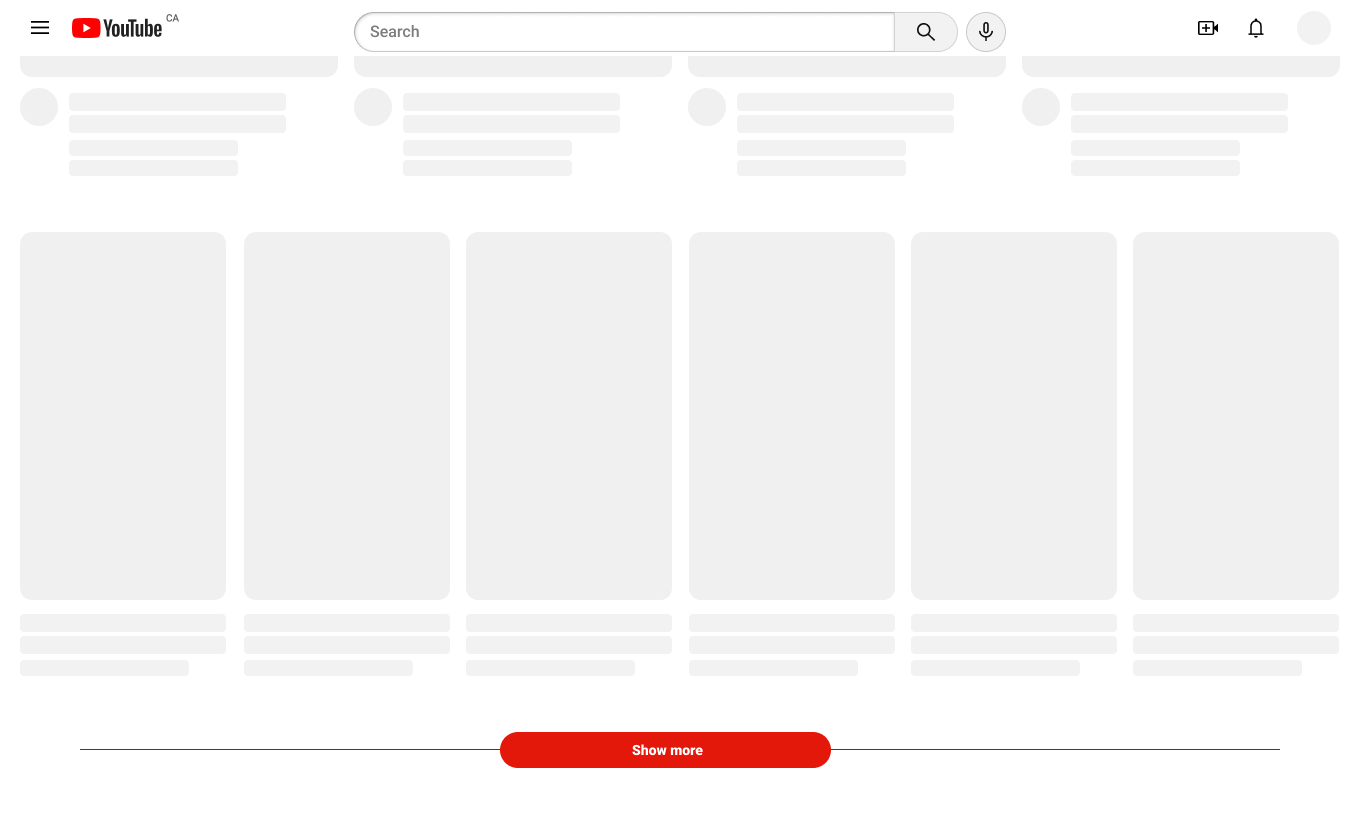 A finite number of content is displayed at a time—the user can click on “Show more” to load more videos. If users are on the Home feed, they will be given the option to actively search and filter for results after multiple clicks.