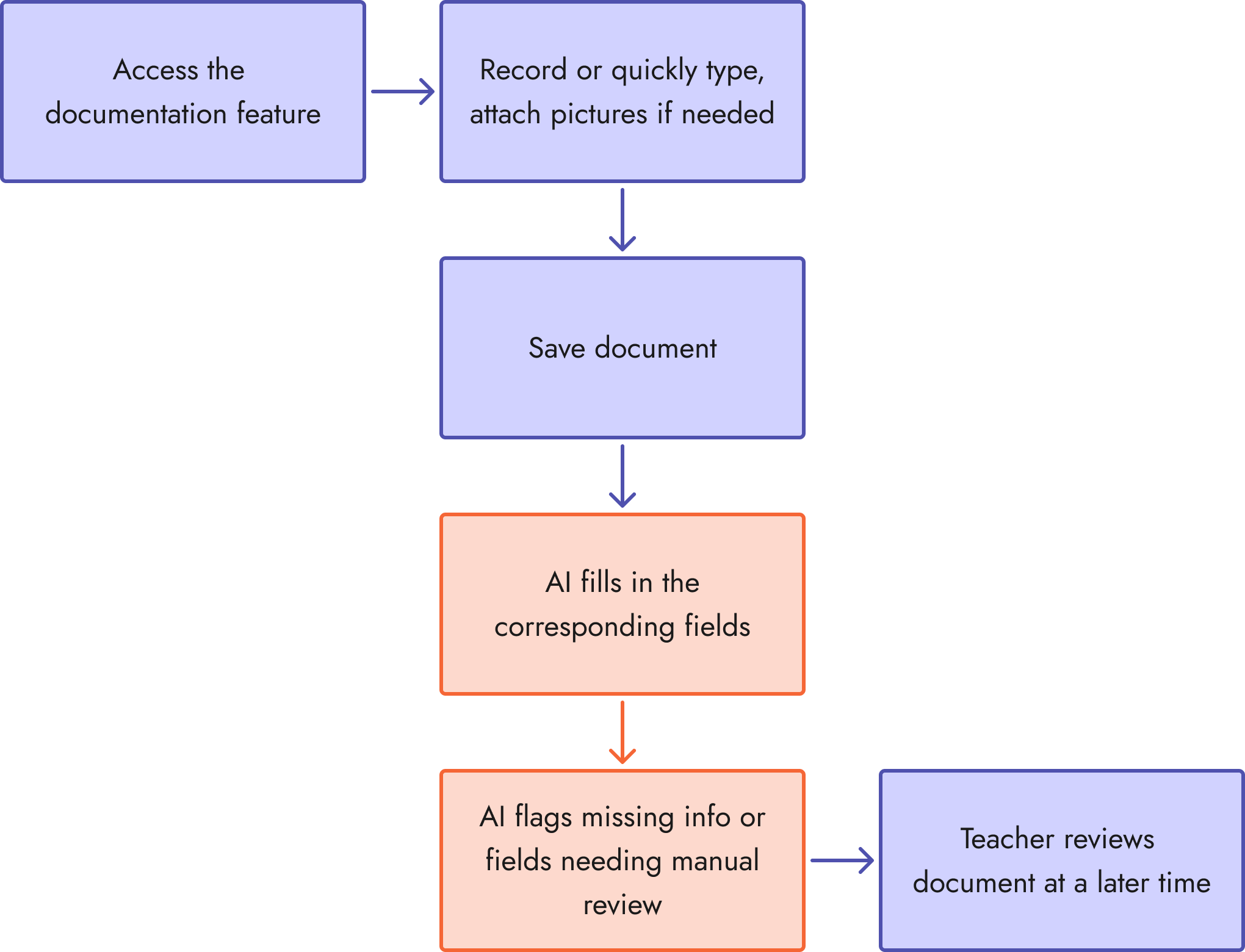 Documentation is time-consuming, inconsistent, and often inaccessible across platforms, leading to duplicated work and missed context. In our survey, 65% of teachers said their current documentation system failed them and were hard to use or learn.